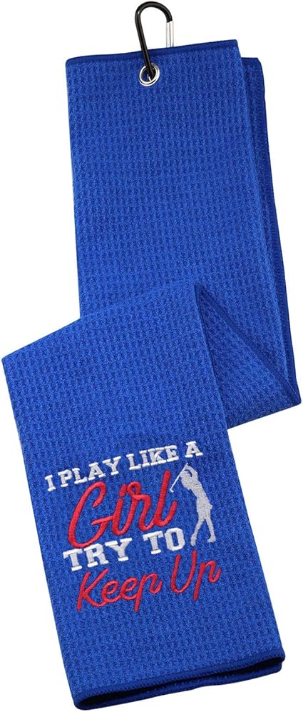 Details: Golf Towel Women’s Golf Towel Funny Golf Towel Gift for Her I Know I Play Like A Girl So Try to Keep Up Golf Towel with Clip (Try to Keep Up Blue)